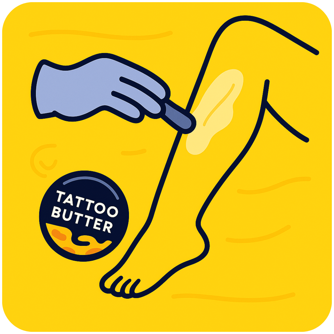 Regelmäßiges Eincremen der Stelle, die tätowiert werden soll, mit einer speziellen Pflege verbessert den Hautzustand und macht sie weicher. Am besten eignet sich unsere Tattoo Butter. Trage täglich eine dünne Schicht auf die zukünftige Tattoo-Stelle auf. Warum?