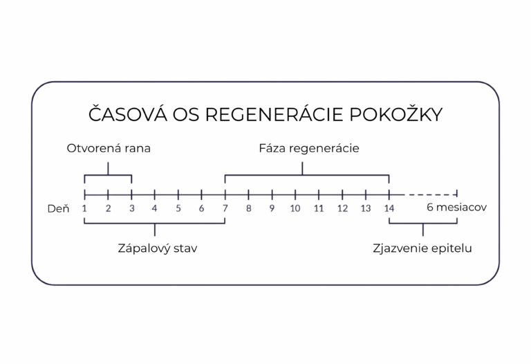 Prvá fáza trvá približne 7–10 dní, ale úplná regenerácia pokožky môže trvať 4–6 týždňov. Počas tejto doby dbaj o čistotu, vyhýbaj sa slnku a pravidelne hydratuj.