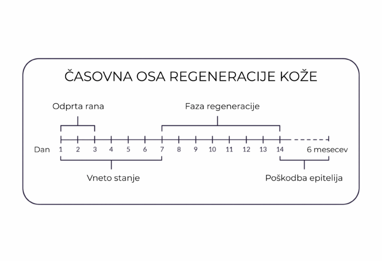 Prva faza traja približno 7–10 dni, vendar popolna regeneracija kože lahko traja kar 4–6 tednov. V tem času skrbno skrbi za čistočo, izogibaj se soncu in vsakodnevno vlaži kožo.